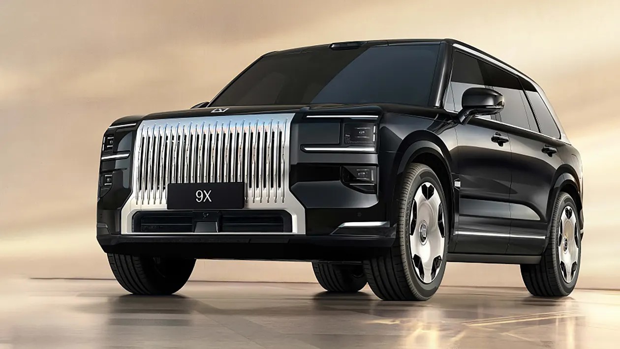 The 9X is a massive vehicle, comparable in size to a long-wheelbase Range Rover. Its exterior design makes a statement with a bold grille, 22-inch wheels, and unique lighting details including “diamond dust”-like inlays. Entry and exit are facilitated by automatically extending running boards, underscoring the vehicle’s luxurious intent. Inside, the 9X offers a premium experience with extensive use of leather, wood trim, and high-end materials. While the white leather interior is visually striking, it raises practical concerns about soiling and wear.